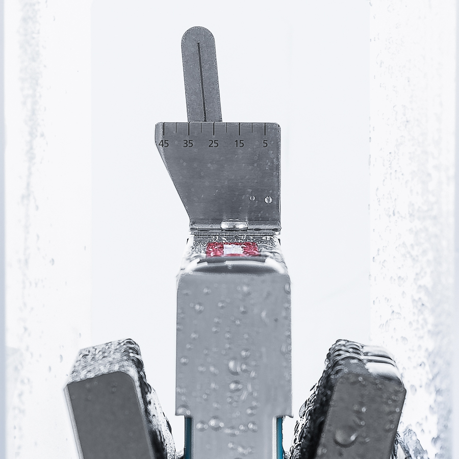 L’angle d’affûtage est réglable en continu entre 15 et 45°. Il est ainsi possible de définir un angle de tranchant optimal pour chaque application.