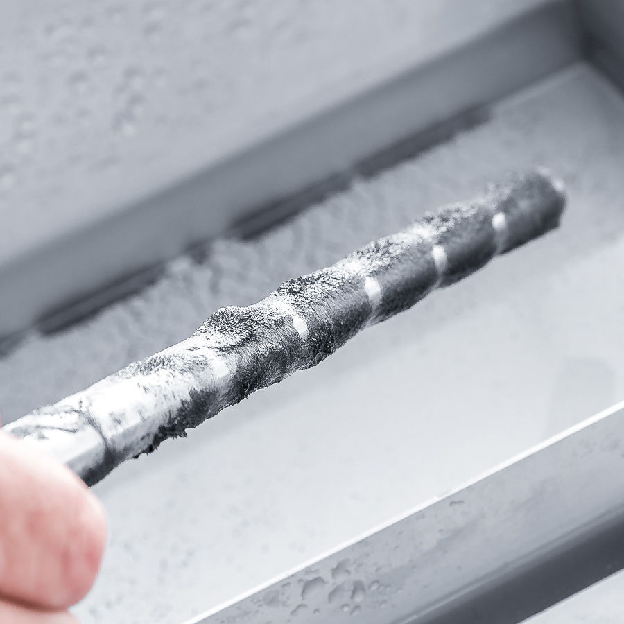 Une pompe à membrane insensible à l’encrassement achemine l’eau de refroidissement jusqu’à l’unité d’affûtage. Toute surchauffe des tranchants lors de l’affûtage est ainsi exclue. La matière enlevée est collectée dans le réservoir à eau. Une tige aimantée sépare la zone sale de la zone propre. Cela empêche le retour de la matière enlevée dans le circuit de refroidissement.